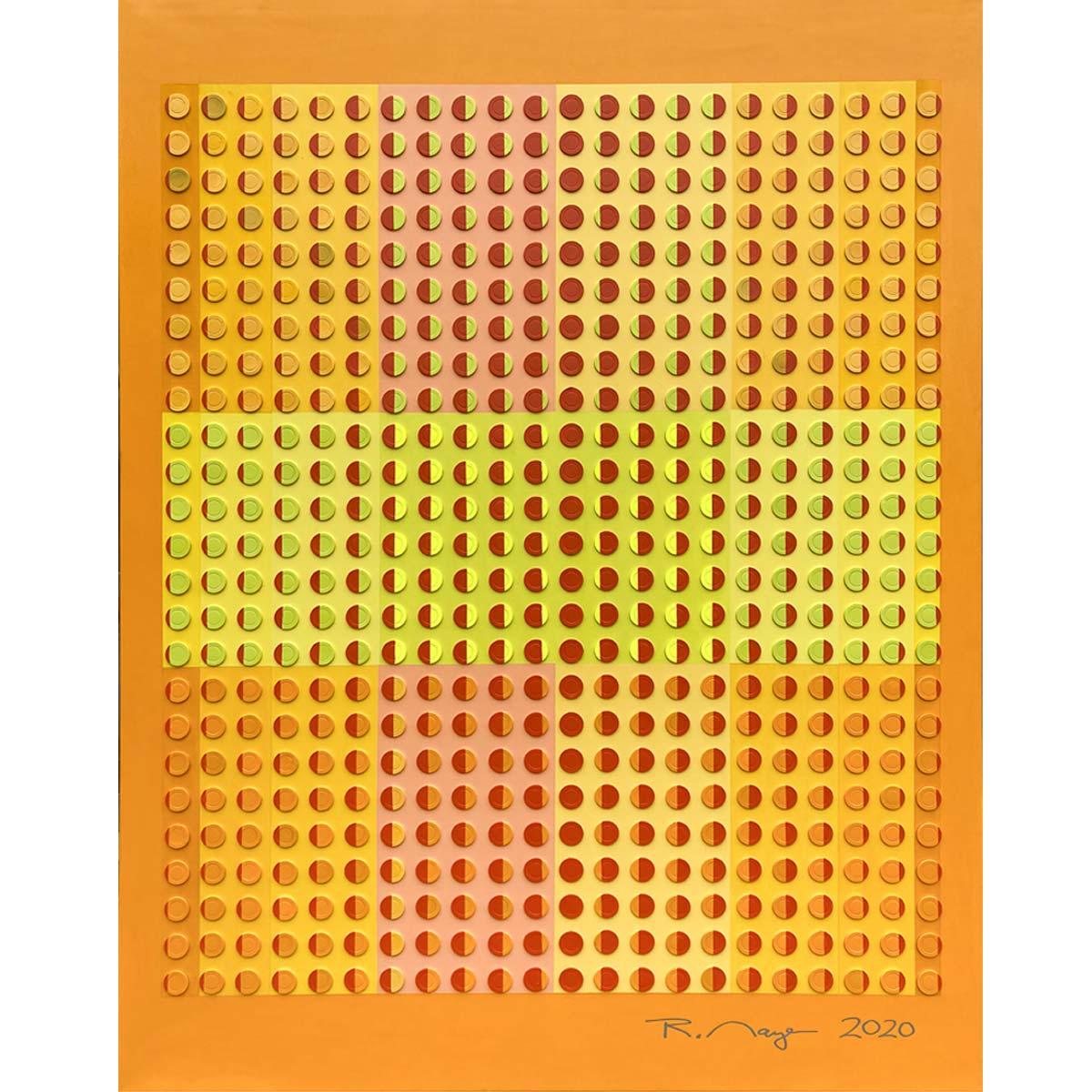 René Mayer, 2020, H x B: 180 x 140 cm. Acryl und bemalte Casinochips auf Leinwand.
