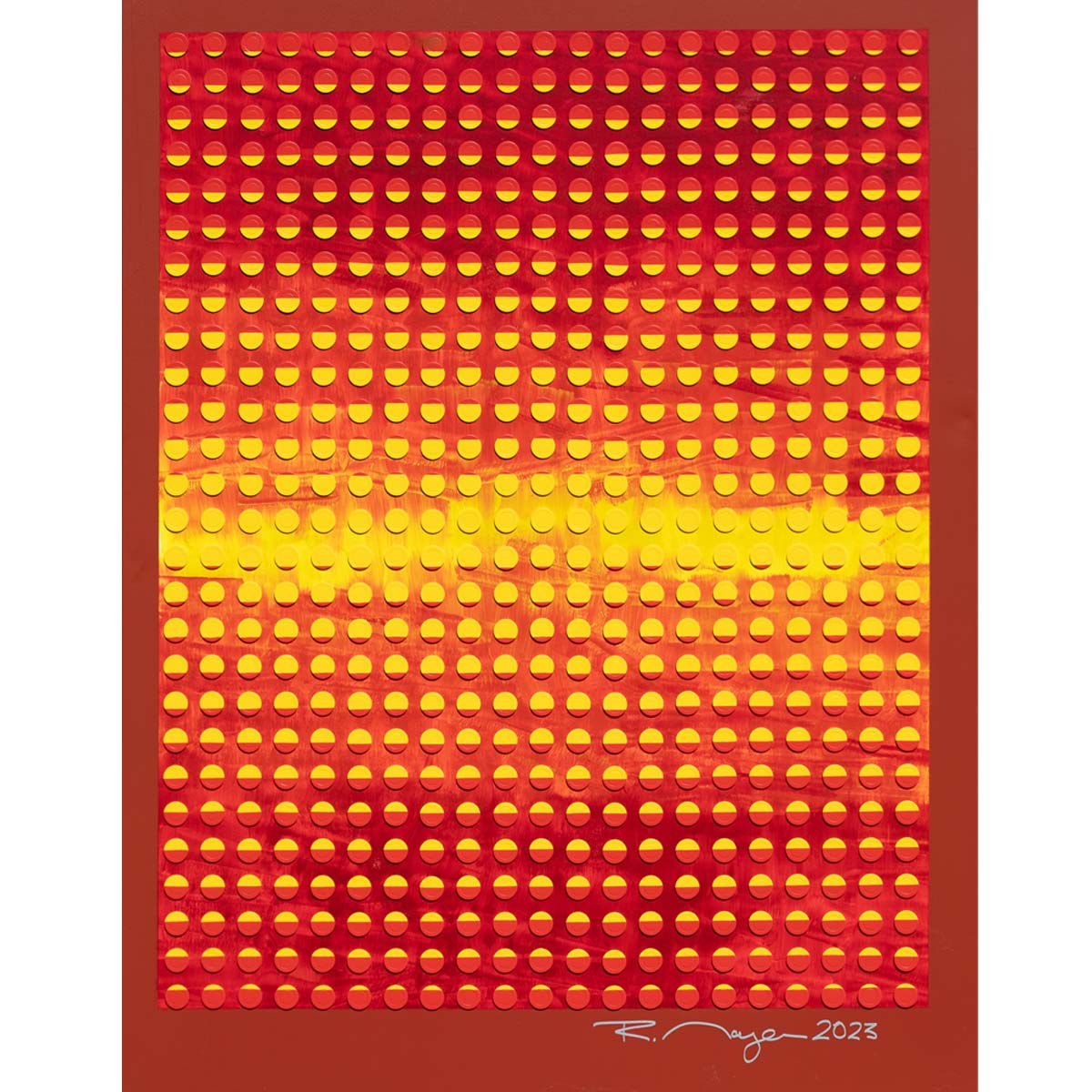 René Mayer, 2023, H x B: 180 x 140 cm. Acryl und bemalte Casinochips auf Leinwand.